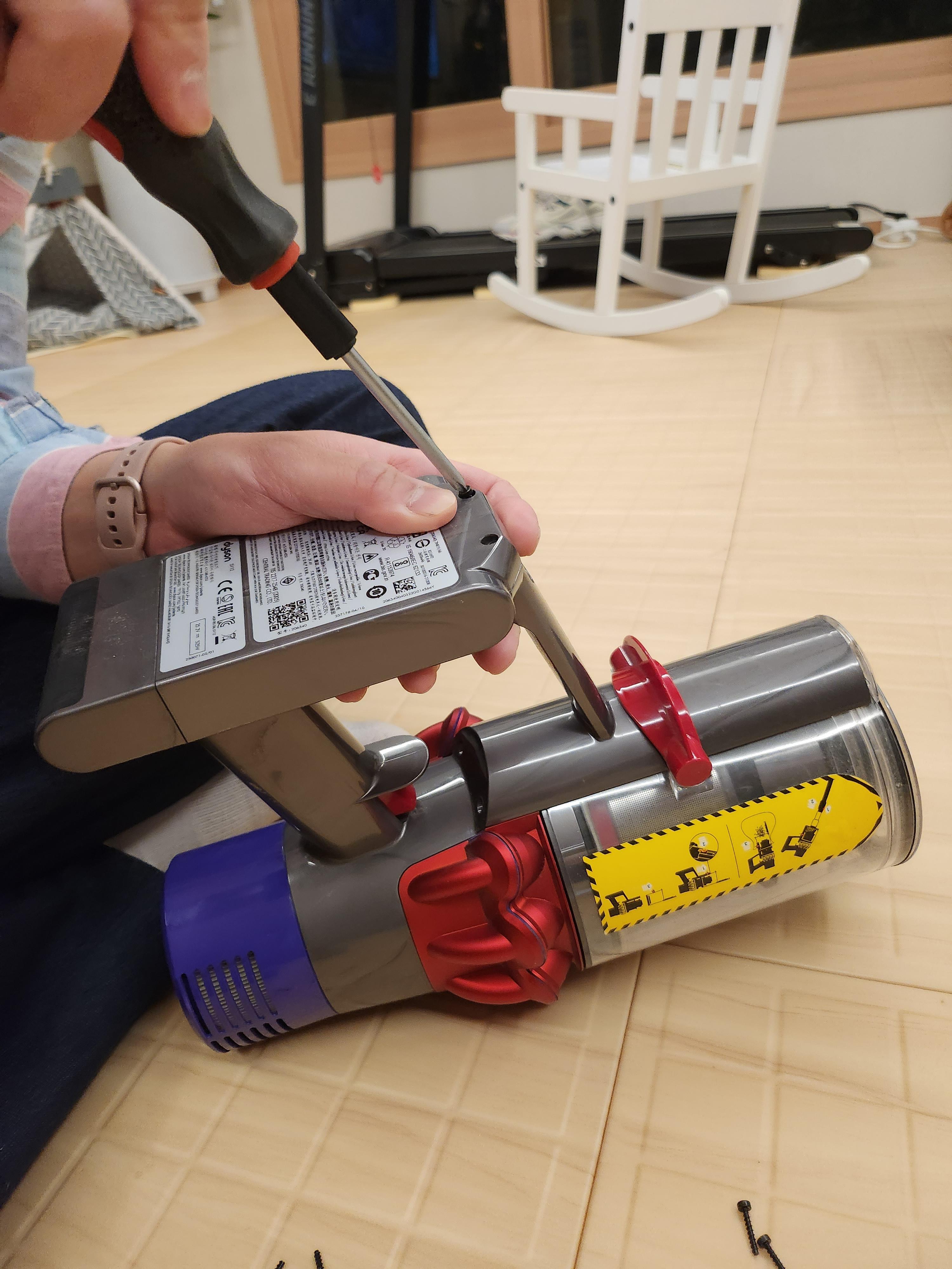 그동안 쓰던 다이슨 청소기 배터리가 수명이 줄어들어서 집 전체를 청소하기에는 충분하지 못한 상태가 되었습니다.