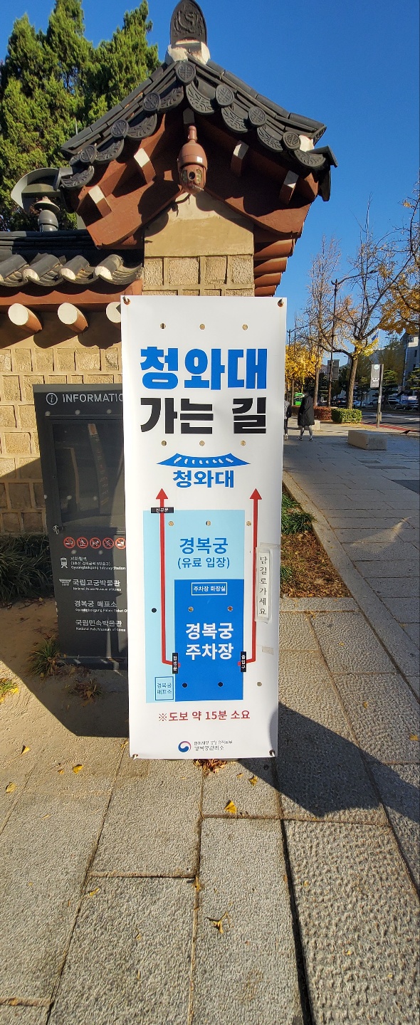 경복궁 주차장 입구로 나오게 되면 청와대 가는 길 안내 표시가 있습니다.