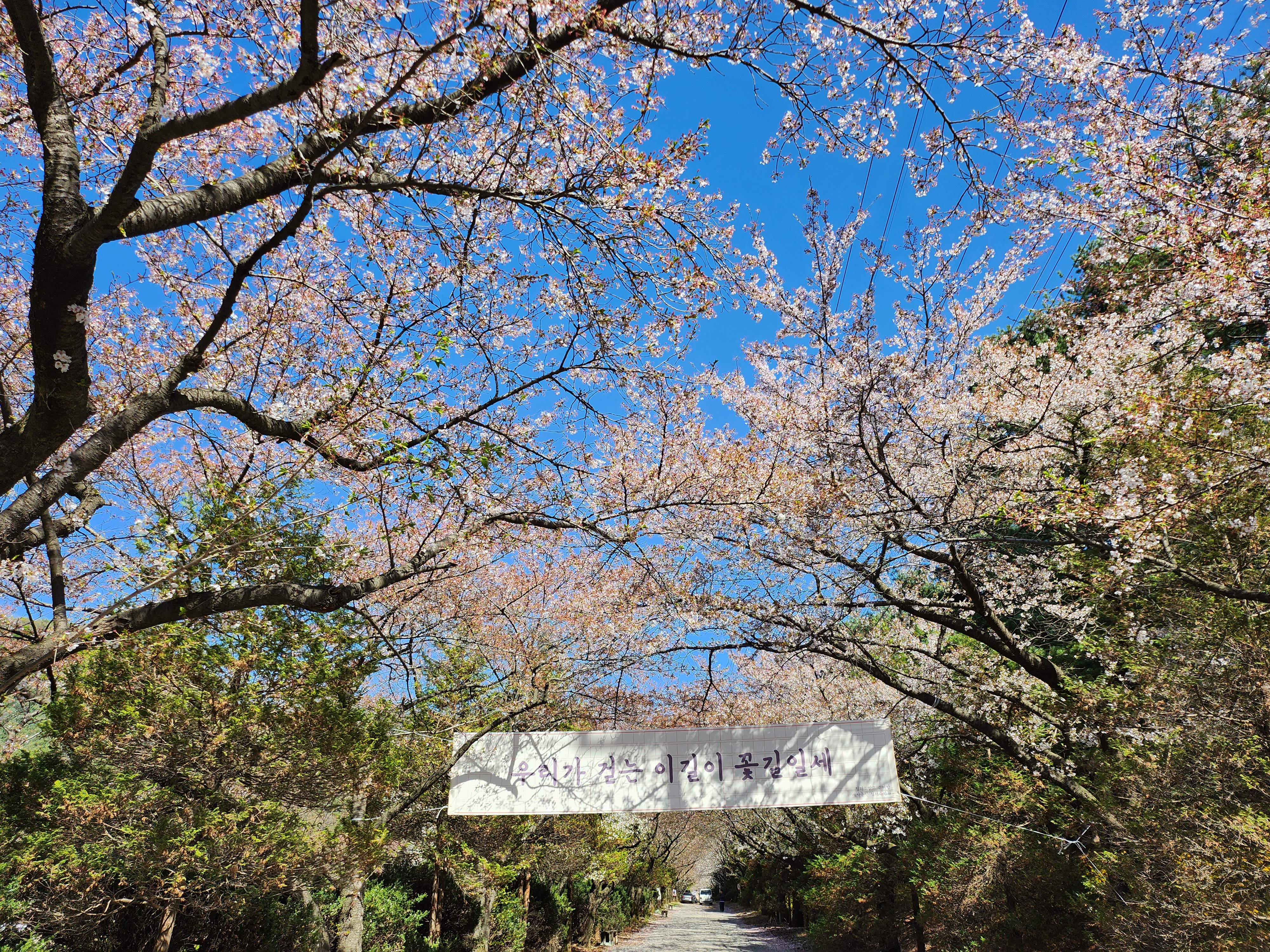 청려수련원의 명소 벚꽃길을 들어가 보니 아직 저희를 반기고 있는 벚꽃들이 있네요 :)